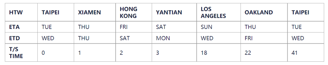 ■ HTW航線,靠長(zhǎng)榮自營(yíng)碼頭ETS;